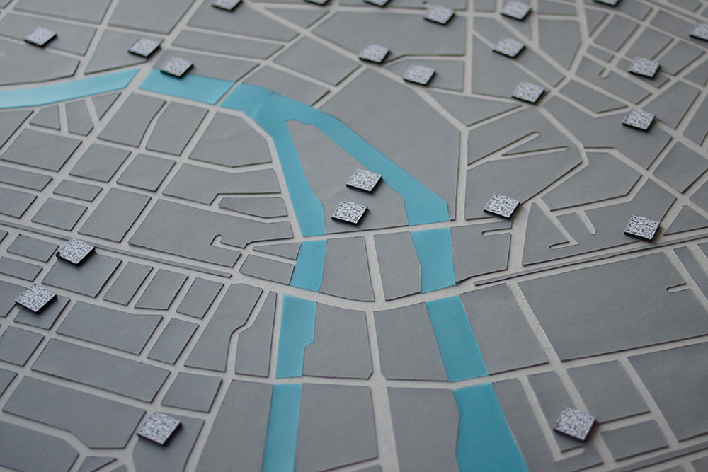 „Qart.links“ facilitates a more efficient search without neglecting the diversity of the offerings. By means of what could be described as a type of digital treasure hunt, what could have been a number of tedious hours spent on research, turns into an exciting activity. Every single „link“ is fixed on the ground as a floor plate. Each gallery and museum gets its own floor plate which will call attention to the facility. Additionally, the pictured code can be scanned by smartphone users. When the code is scanned, a different exhibition or event is recommend. This recommendation is generated at random and on an ad hoc basis. In this way digital and analogous places are linked.
